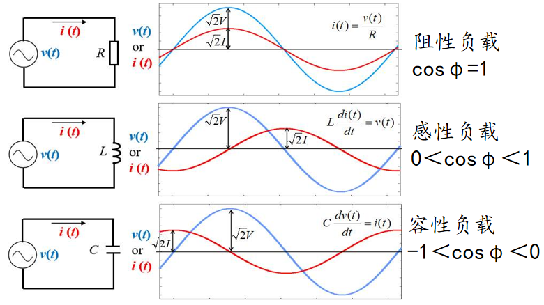 In a pure inductive load, the current IL lags the voltage by 90°, and its power is referred to as inductive reactive power. Conversely, in a pure capacitive load, the current Ic is ahead of the voltage by 9 0°, and its power is known as capacitive reactive power.
