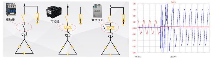 Do thực tế là việc chuyển đổi các tụ song song trong thời gian trước đó đã đạt được thông qua các bộ tiếp xúc, có thời gian phản ứng trên quy mô cấp thứ hai, nhược điểm chết người của nó là dòng chảy lớn trong quá trình chuyển đổi. Trong các trường hợp nghiêm trọng, nó có thể đạt 50-100 lần dòng điện định mức của tụ bù, dẫn đến ánh sáng hồ quang đáng kể và gây thiệt hại cho tụ điện và tiếp xúc. Dựa trên hoạt động thực tế của tải tại chỗ, các lựa chọn thay thế cho các bộ tiếp xúc như công tắc đồng bộ, công tắc lai và công tắc thyristor đã dần xuất hiện trên thị trường. Những lựa chọn thay thế này đã cải thiện đáng kể việc chuyển mạch ở điện áp bằng không và ngắt ở dòng điện bằng không, làm giảm đáng kể thiệt hại thiết bị gây ra bởi chuyển mạch dòng điện.