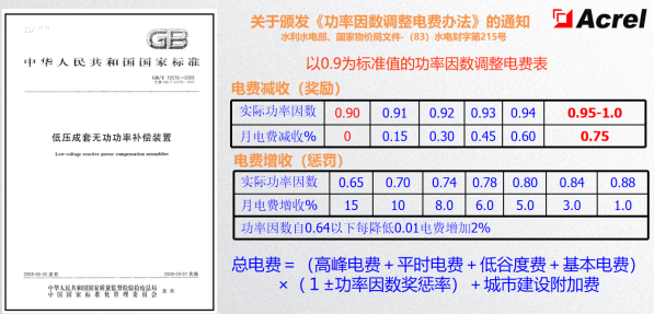 Theo thông báo về "Phương pháp điều chỉnh phí điện dựa trên yếu tố công suất ", không khó để tìm thấy rằng các quy tắc điều chỉnh yếu tố công suất lấy 0,9 làm giá trị chuẩn. Bằng cách tăng yếu tố công suất, người dùng có thể giảm tổng phí điện của họ. Ngoài ra, người dùng phân phối có hệ số công suất cao hơn 0,9 cũng có thể nhận được phần thưởng từ công ty điện cho điều chỉnh hệ số công suất. Thông qua bồi thường hợp lý, hệ số công suất tại điểm đo có thể được điều chỉnh để đáp ứng các tiêu chuẩn quốc gia, có thể loại bỏ phí hệ số công suất và giảm đáng kể chi phí điện cho người sử dụng điện.