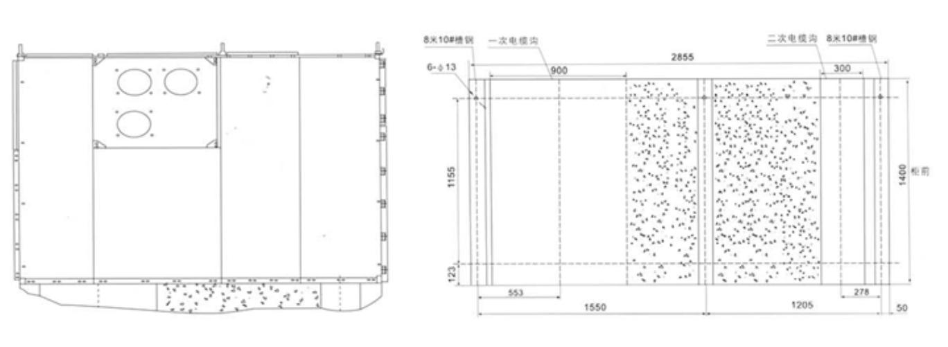 V.ỏ và phân vùng của thiết bị chuyển mạch được bu lông cùng với các tấm thép cán nguội sau khi được xử lý và uốn cong bằng máy công cụ CNC. Do đó, thiết bị chuyển mạch lắp ráp có thể đảm bảo tính đồng nhất của kích thước cấu trúc. Thiết bị chuyển mạch được chia thành một phòng ngắt mạch, một phòng busbar chính, một phòng cáp và một phòng dụng cụ rơle, và mỗi phần được tách ra bởi một vách ngăn kim loại nối đất.