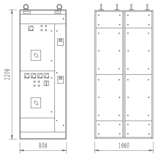 4 / 4 /. 1 Tổng chiều cao của sản phẩm là 2200mm, trên cùng là thanh bus, phần giữa là chiều cao lắp đặt của các thành phần điện, cao nhất là 1800mm và phần dưới cùng của sơ đồ cố định nên được trừ đi 200mm, tối đa là 1600mm (ngoại trừ sơ đồ được đưa ra 1800mm).