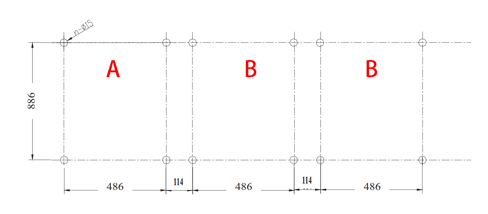 Hình 5 Kích thước lắp đặt của tủ chuỗi A.: tủ đầu vào B: tủ nạp