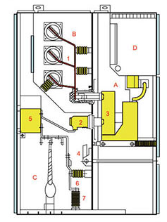 1. Thanh cái 2. Đĩa tiếp xúc tĩnh 3. Bộ Ngắt Mạch