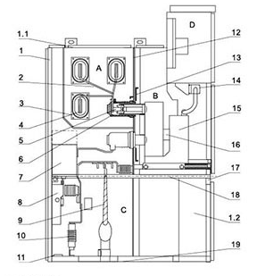 ◆Phòng Cáp C Máy biến áp dòng điện, công tắc nối đất, Thiết bị chống sét và cáp có thể được lắp đặt trong phòng cáp, và các tấm nhôm có thể tháo rời với khe được chuẩn bị ở dưới cùng của phòng cáp để đảm bảo sự tiện lợi của việc xây dựng tại chỗ. |
