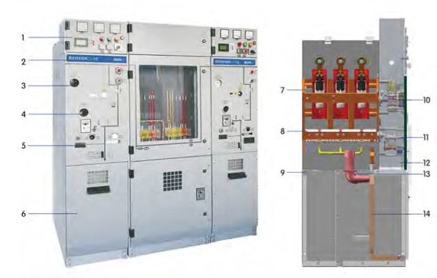 5. Hiển thị trực tiếp 6. Phòng cáp 7. Máy ngắt chân không / công tắc tải