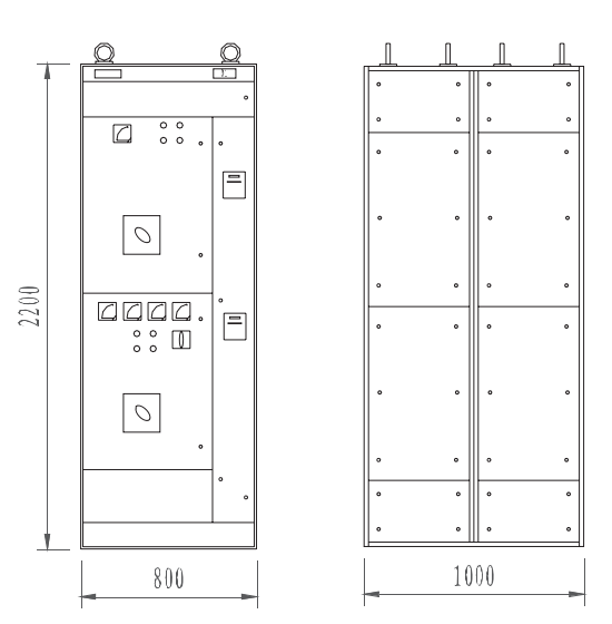 | Hình 3 Kích thước tổng thể của tủ điều khiển và tủ tụ điện |